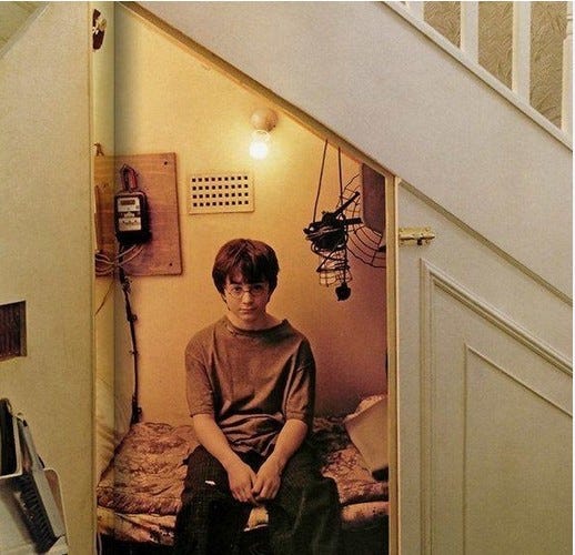 The opening chapters remain quietly brutal. Before magic, Rowling gives us neglect. Harry Potter is not introduced as “the boy who lived,” but as a child who survives emotional erasure. The cupboard under the stairs is not metaphorical; it is literal. His relatives do not hate him dramatically; they inconvenience him into invisibility. It’s mundane cruelty, the kind that doesn’t leave marks but shapes a person forever.