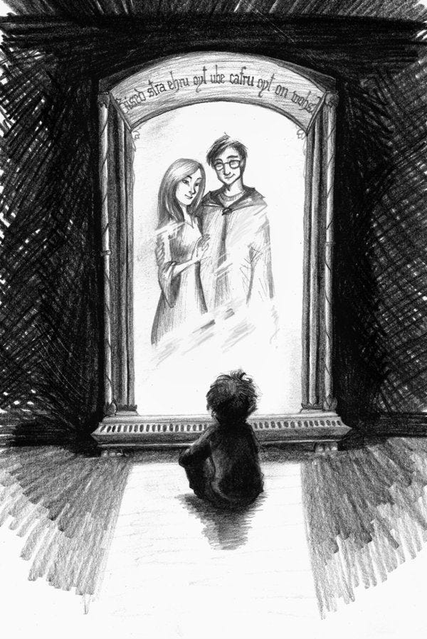 As children, the mirror was sad. As adults, it is devastating. Harry doesn’t see power. He doesn’t see glory. He sees his parents. The first book understands grief long before the series becomes about death. And Dumbledore’s warning - “It does not do to dwell on dreams and forget to live”- lands differently now, in an era where longing is constantly monetized.